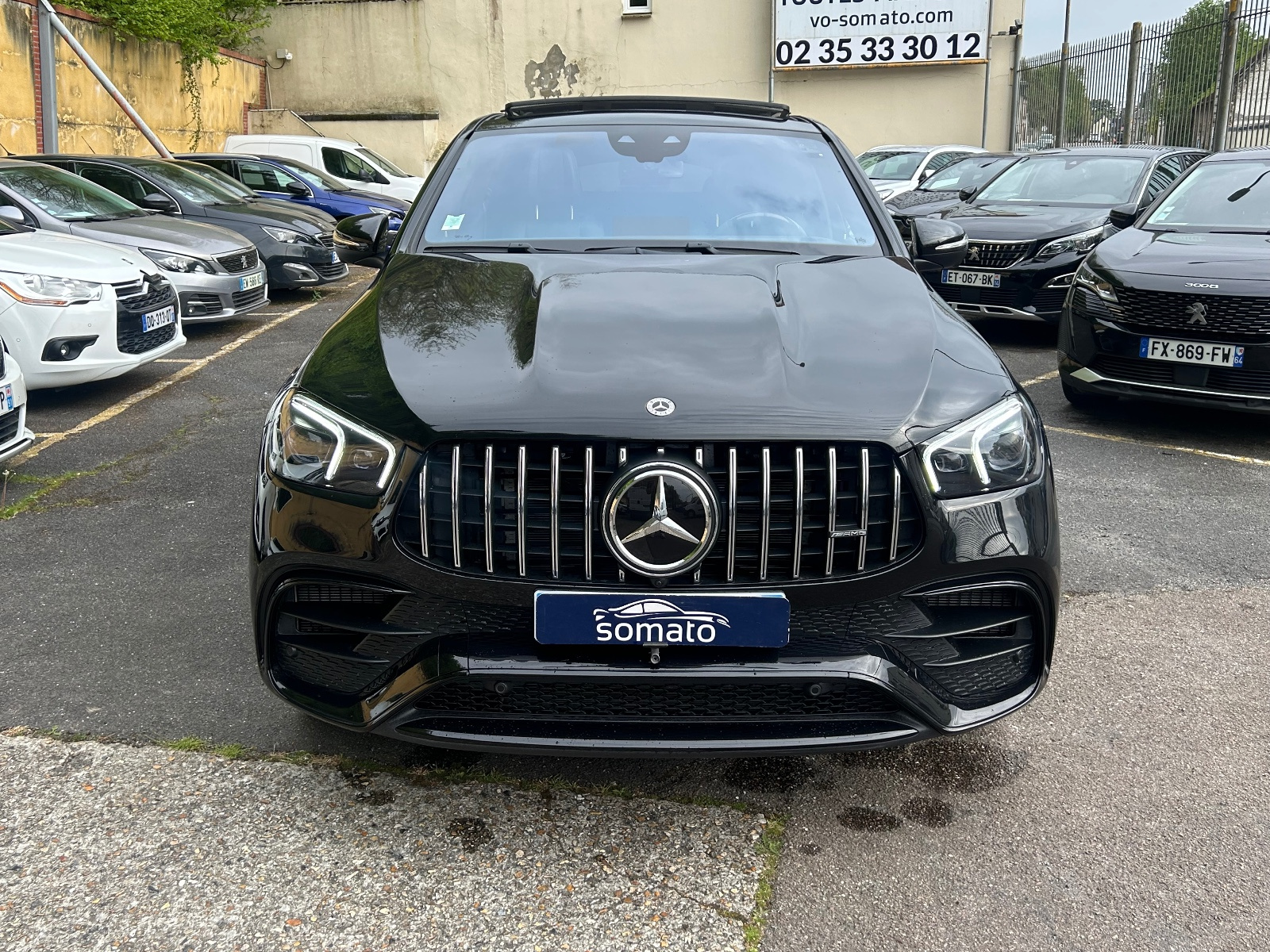 Grille de calandre spécifique AMG à lamelles verticales chromées, logo AMG et étoile Mercedes