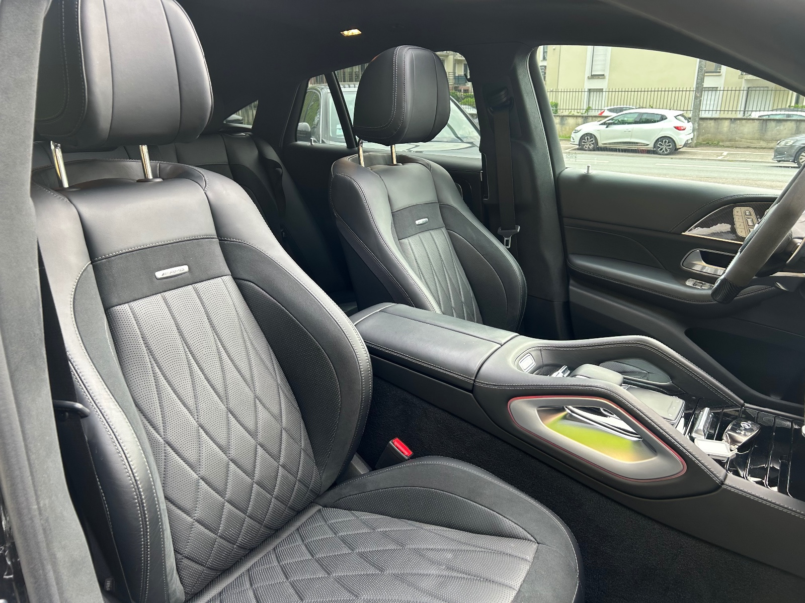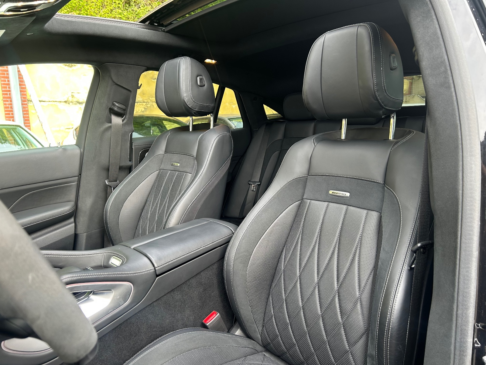 Sièges AMG pour le conducteur et le passsager AV avec garniture spécifique AMG et badge AMG sur le dossier
