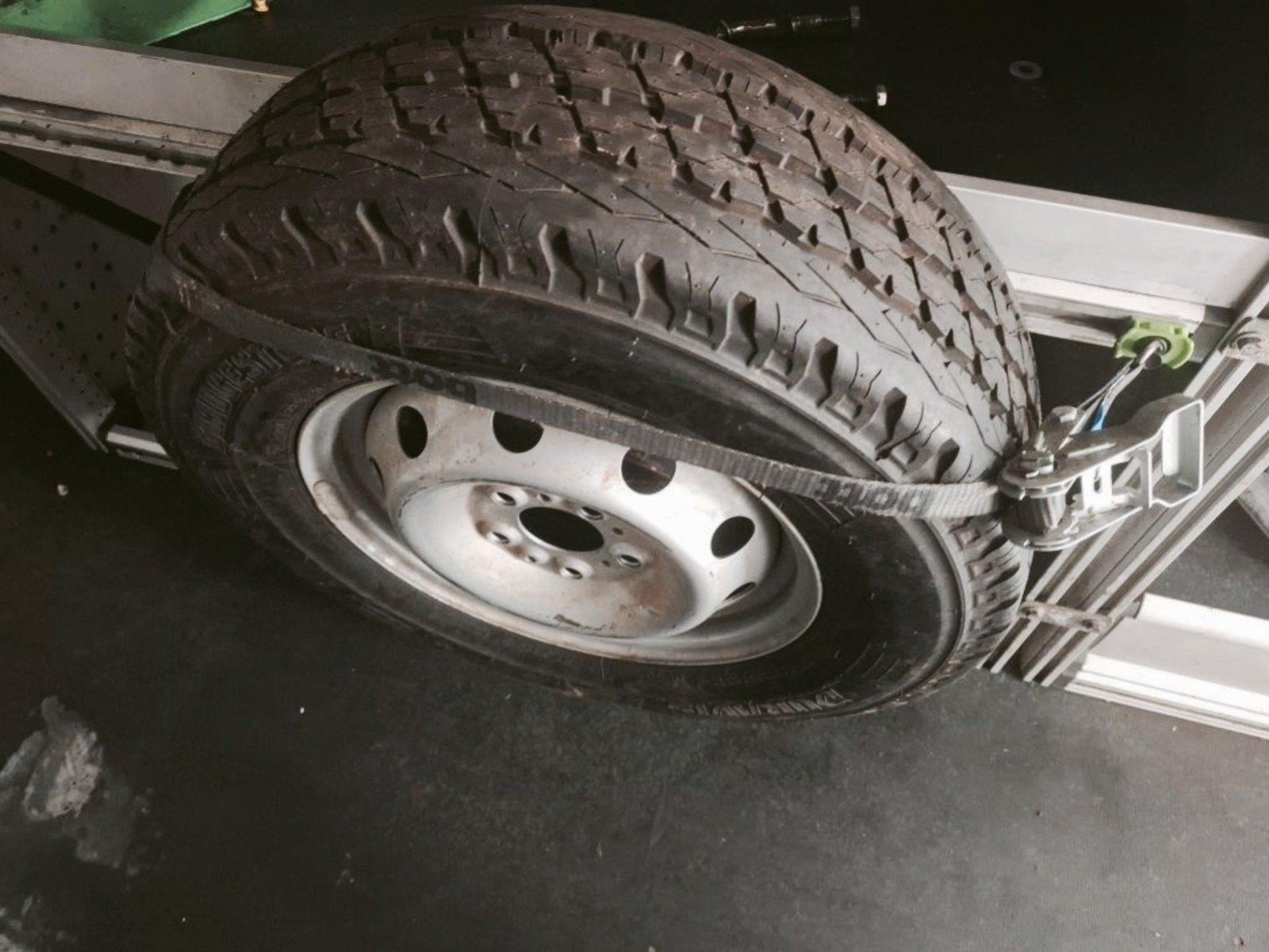 Roue de secours sous plancher positionnable avec treuil